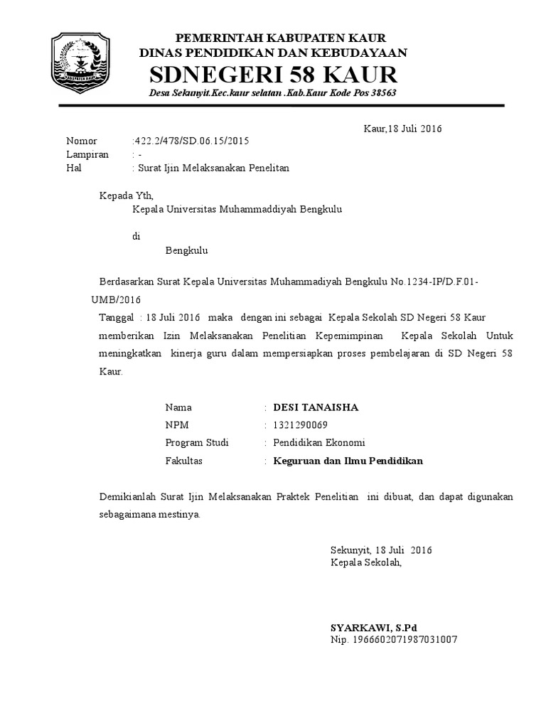Contoh Surat Izin Melakukan Penelitian Di Sekolah Berbagi Ilmu